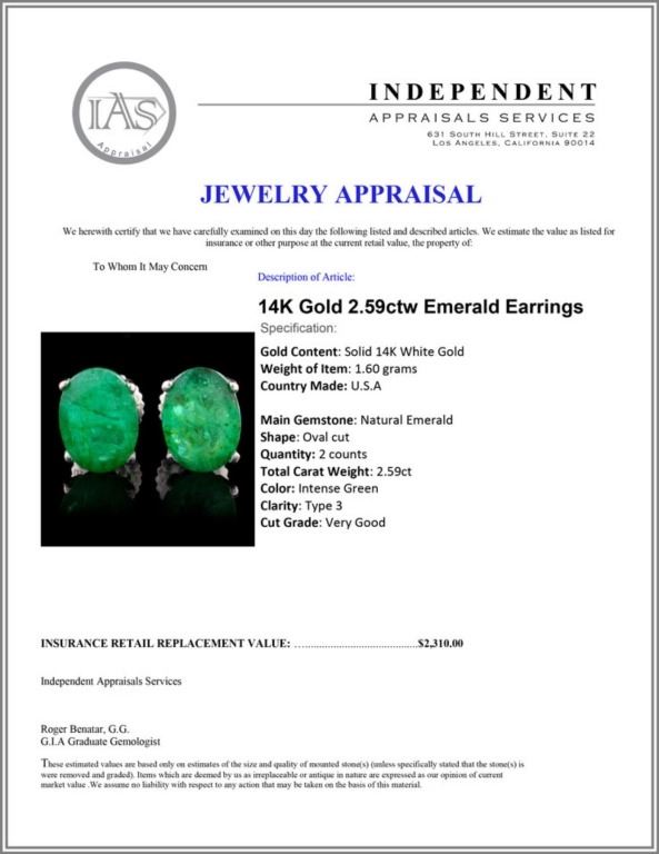 Regarding Appraised Jewelry and Loose Stones - Auctionfarm sends them out to a third party for Retail Replacement Value Appraisals, which are the most common. These types of evaluations are written for insurance needs. This would be the cost to replace the jewelry with an item of equal quality and kind, considered to be the current market price or the replacement value. This type of appraisal is done to protect you in the event of damage or loss of a valuable item. Our appraisals are conducted by independent 3rd Party appraisal firms that utilizes Certified GIA Gemologist. Appraisals should be used for verification of gemstone and/or metal weight, size, and grade only, not actual value. Appraisal value should be considered for insurance purposes only, not actual value, as price varies greatly from retail locations thru out the world. Items should not be purchased with the expectation to resell for appraisal price, or for profit.