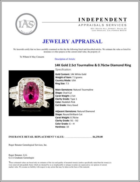 Regarding Appraised Jewelry and Loose Stones - Auctionfarm sends them out to a third party for Retail Replacement Value Appraisals, which are the most common. These types of evaluations are written for insurance needs. This would be the cost to replace the jewelry with an item of equal quality and kind, considered to be the current market price or the replacement value. This type of appraisal is done to protect you in the event of damage or loss of a valuable item. Our appraisals are conducted by independent 3rd Party appraisal firms that utilizes Certified GIA Gemologist. Appraisals should be used for verification of gemstone and/or metal weight, size, and grade only, not actual value. Appraisal value should be considered for insurance purposes only, not actual value, as price varies greatly from retail locations thru out the world. Items should not be purchased with the expectation to resell for appraisal price, or for profit.