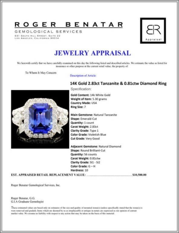 Regarding Appraised Jewelry and Loose Stones - Auctionfarm sends them out to a third party for Retail Replacement Value Appraisals, which are the most common. These types of evaluations are written for insurance needs. This would be the cost to replace the jewelry with an item of equal quality and kind, considered to be the current market price or the replacement value. This type of appraisal is done to protect you in the event of damage or loss of a valuable item. Our appraisals are conducted by independent 3rd Party appraisal firms that utilizes Certified GIA Gemologist. Appraisals should be used for verification of gemstone and/or metal weight, size, and grade only, not actual value. Appraisal value should be considered for insurance purposes only, not actual value, as price varies greatly from retail locations thru out the world. Items should not be purchased with the expectation to resell for appraisal price, or for profit.