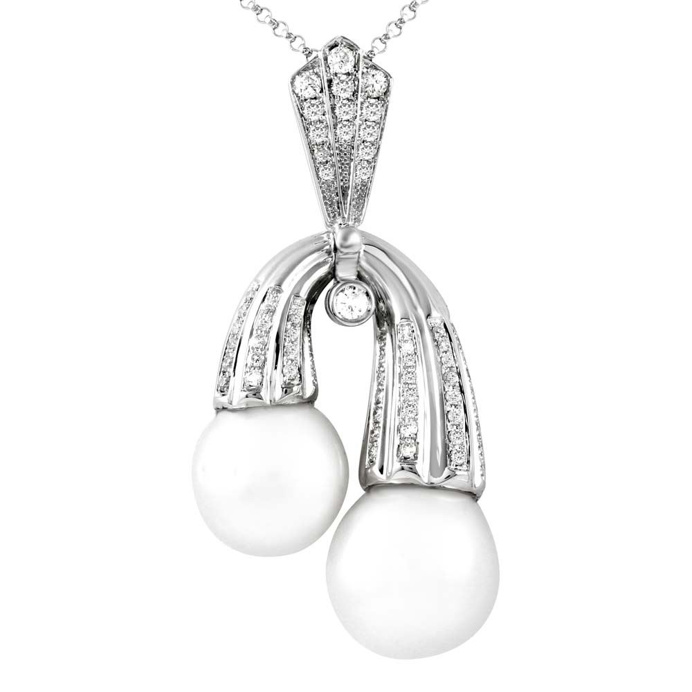 REF-129A2N ---- 14K Gold 20.18 CTW Pearl & Diamond Necklace