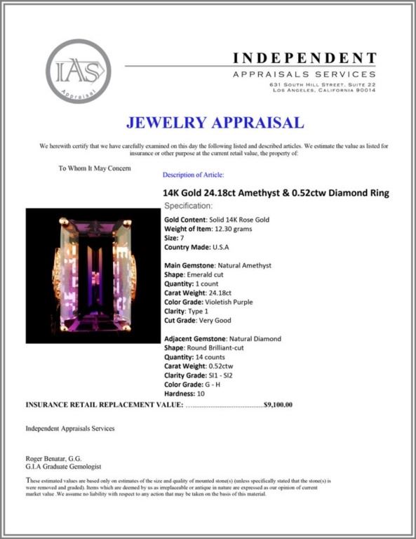 Regarding Appraised Jewelry and Loose Stones - Auctionfarm sends them out to a third party for Retail Replacement Value Appraisals, which are the most common. These types of evaluations are written for insurance needs. This would be the cost to replace the jewelry with an item of equal quality and kind, considered to be the current market price or the replacement value. This type of appraisal is done to protect you in the event of damage or loss of a valuable item. Our appraisals are conducted by independent 3rd Party appraisal firms that utilizes Certified GIA Gemologist. Appraisals should be used for verification of gemstone and/or metal weight, size, and grade only, not actual value. Appraisal value should be considered for insurance purposes only, not actual value, as price varies greatly from retail locations thru out the world. Items should not be purchased with the expectation to resell for appraisal price, or for profit.