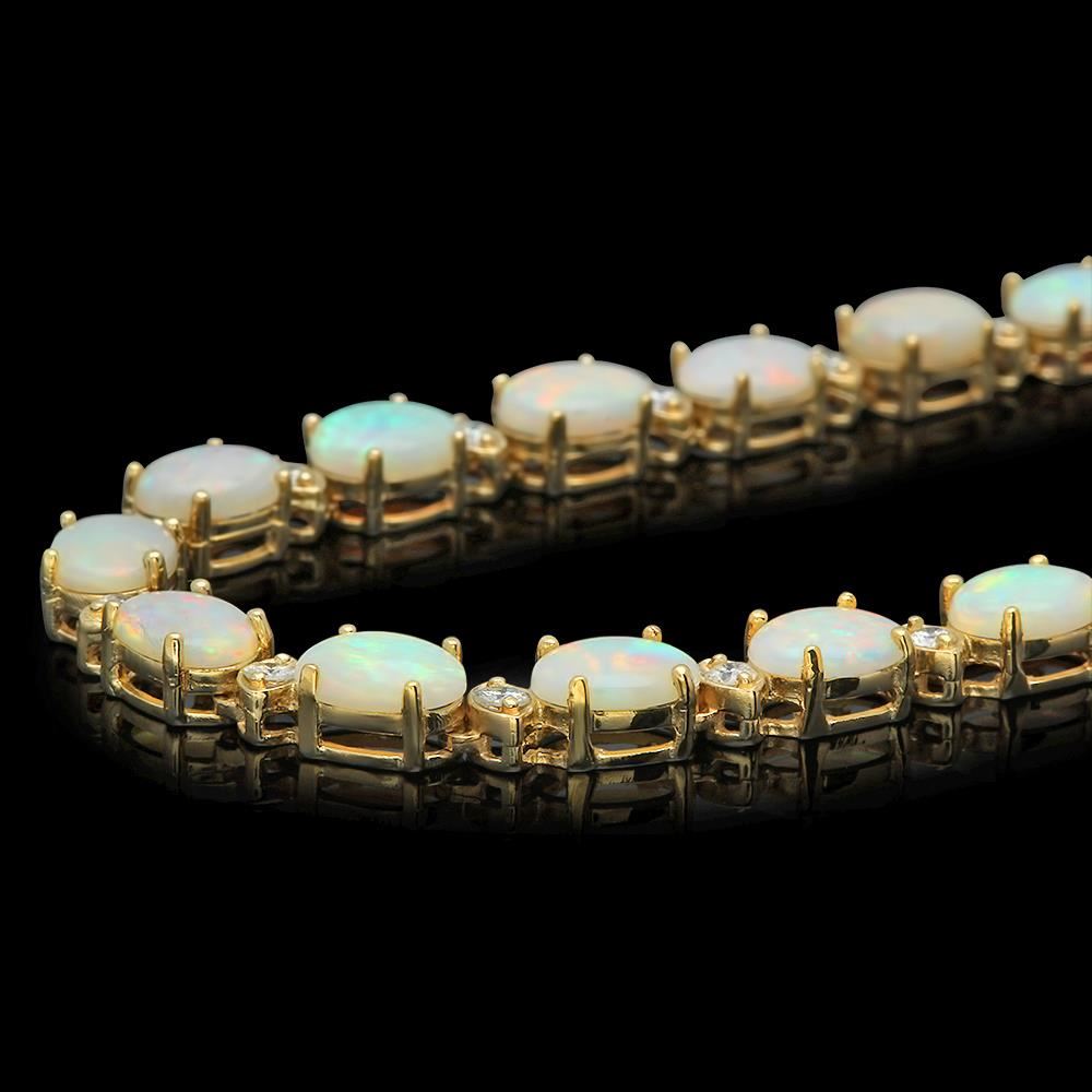 Retail: $23,110.00 ****** 14K Gold 24.51ct Opal 2.24ct Diamond Necklace ****** Metal: 14K Solid Gold / Total Item Weight: 28.5 grams / Country Made: United States / / Main Stone: Opal / Color: Play of color / Carat Total Weight: 24.51 / Treatment: None / Cut: Very Good / / Secondary Stone: Diamond / Carat Total Weight: 2.24 / Treatment: None / Color Grade: H - I / Clarity: SI1 - SI3 / Cut: Round Brilliant /
