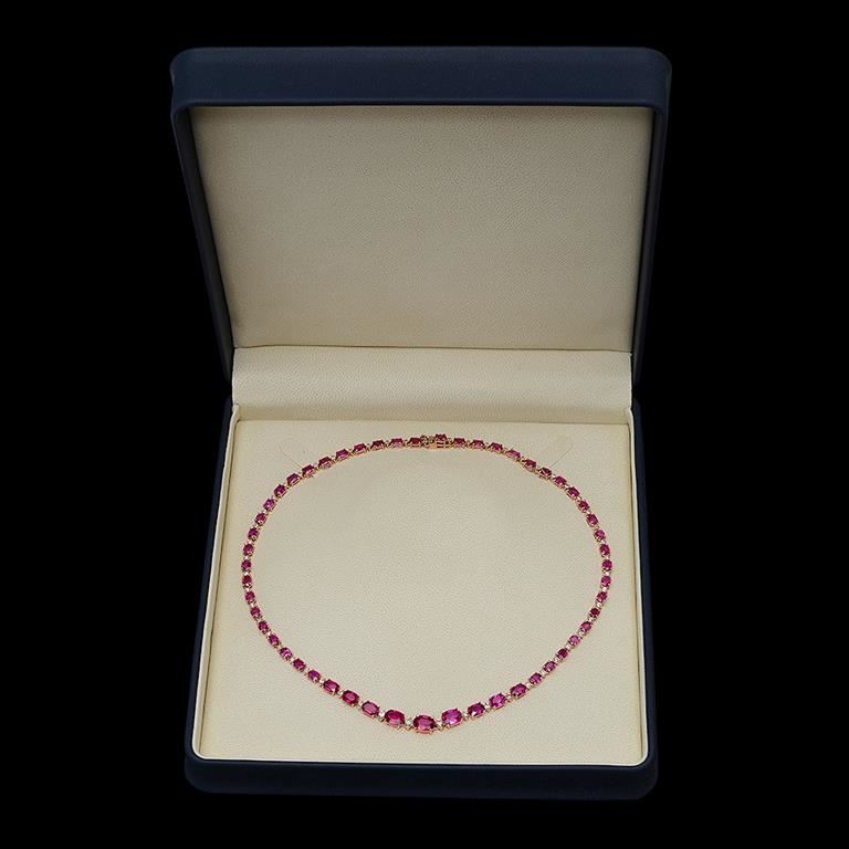 Retail: $16,945.00******14K Gold Ruby & Diamond Necklace****** Metal: 14K Solid Rose Gold / Total Item Weight: 21.7 grams/ Country Made: United States / / Main Stone: Ruby / Color: Pinkish Red / Carat Total Weight: 28.65 / Treatment: None / Clarity: Type 2 / Cut: Very Good / / Secondary Stone: Diamond / Carat Total Weight: 1.65 / Treatment: None / Color Grade: G -I / Clarity: SI1 - SI3 / Cut: Round Brilliant /