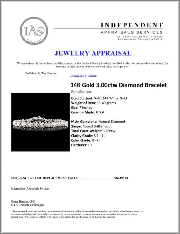 Regarding Appraised Jewelry and Loose Stones - Auctionfarm sends them out to a third party for Retail Replacement Value Appraisals, which are the most common. These types of evaluations are written for insurance needs. This would be the cost to replace the jewelry with an item of equal quality and kind, considered to be the current market price or the replacement value. This type of appraisal is done to protect you in the event of damage or loss of a valuable item. Our appraisals are conducted by independent 3rd Party appraisal firms that utilizes Certified GIA Gemologist. Appraisals should be used for verification of gemstone and/or metal weight, size, and grade only, not actual value. Appraisal value should be considered for insurance purposes only, not actual value, as price varies greatly from retail locations thru out the world. Items should not be purchased with the expectation to resell for appraisal price, or for profit.