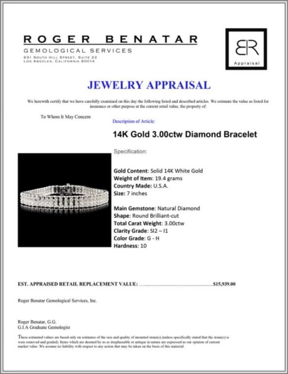 Regarding Appraised Jewelry and Loose Stones - Auctionfarm sends them out to a third party for Retail Replacement Value Appraisals, which are the most common. These types of evaluations are written for insurance needs. This would be the cost to replace the jewelry with an item of equal quality and kind, considered to be the current market price or the replacement value. This type of appraisal is done to protect you in the event of damage or loss of a valuable item. Our appraisals are conducted by independent 3rd Party appraisal firms that utilizes Certified GIA Gemologist. Appraisals should be used for verification of gemstone and/or metal weight, size, and grade only, not actual value. Appraisal value should be considered for insurance purposes only, not actual value, as price varies greatly from retail locations thru out the world. Items should not be purchased with the expectation to resell for appraisal price, or for profit.