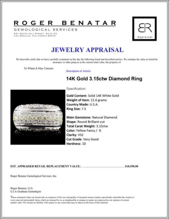 Regarding Appraised Jewelry and Loose Stones - Auctionfarm sends them out to a third party for Retail Replacement Value Appraisals, which are the most common. These types of evaluations are written for insurance needs. This would be the cost to replace the jewelry with an item of equal quality and kind, considered to be the current market price or the replacement value. This type of appraisal is done to protect you in the event of damage or loss of a valuable item. Our appraisals are conducted by independent 3rd Party appraisal firms that utilizes Certified GIA Gemologist. Appraisals should be used for verification of gemstone and/or metal weight, size, and grade only, not actual value. Appraisal value should be considered for insurance purposes only, not actual value, as price varies greatly from retail locations thru out the world. Items should not be purchased with the expectation to resell for appraisal price, or for profit.
