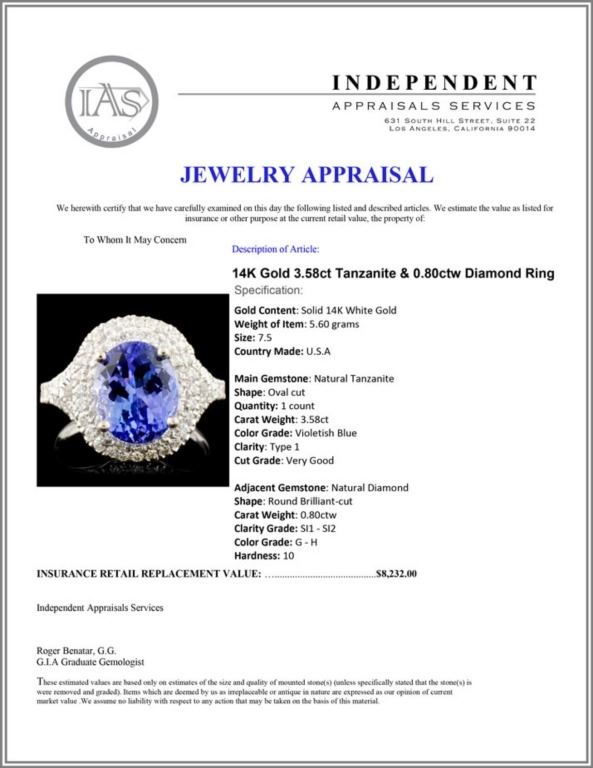 Regarding Appraised Jewelry and Loose Stones - Auctionfarm sends them out to a third party for Retail Replacement Value Appraisals, which are the most common. These types of evaluations are written for insurance needs. This would be the cost to replace the jewelry with an item of equal quality and kind, considered to be the current market price or the replacement value. This type of appraisal is done to protect you in the event of damage or loss of a valuable item. Our appraisals are conducted by independent 3rd Party appraisal firms that utilizes Certified GIA Gemologist. Appraisals should be used for verification of gemstone and/or metal weight, size, and grade only, not actual value. Appraisal value should be considered for insurance purposes only, not actual value, as price varies greatly from retail locations thru out the world. Items should not be purchased with the expectation to resell for appraisal price, or for profit.