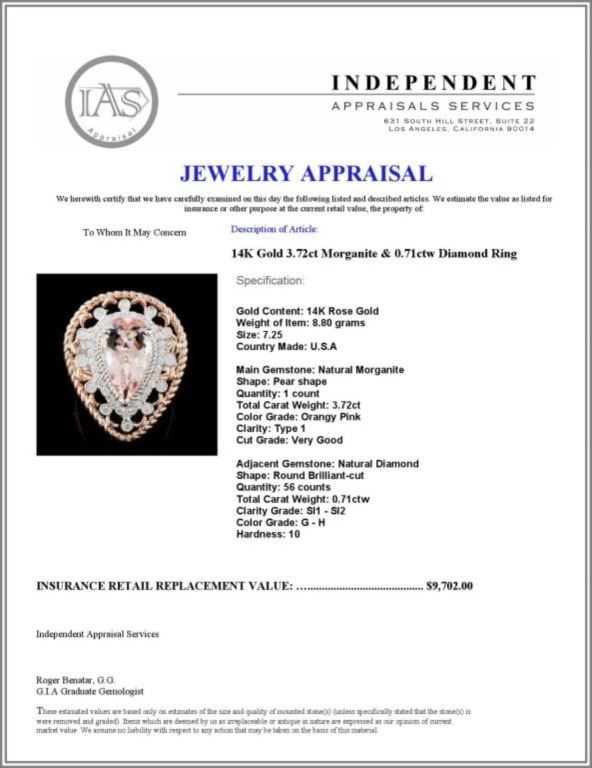 Regarding Appraised Jewelry and Loose Stones - Auctionfarm sends them out to a third party for Retail Replacement Value Appraisals, which are the most common. These types of evaluations are written for insurance needs. This would be the cost to replace the jewelry with an item of equal quality and kind, considered to be the current market price or the replacement value. This type of appraisal is done to protect you in the event of damage or loss of a valuable item. Our appraisals are conducted by independent 3rd Party appraisal firms that utilizes Certified GIA Gemologist. Appraisals should be used for verification of gemstone and/or metal weight, size, and grade only, not actual value. Appraisal value should be considered for insurance purposes only, not actual value, as price varies greatly from retail locations thru out the world. Items should not be purchased with the expectation to resell for appraisal price, or for profit.