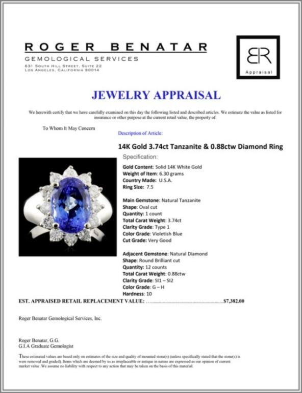 Regarding Appraised Jewelry and Loose Stones - Auctionfarm sends them out to a third party for Retail Replacement Value Appraisals, which are the most common. These types of evaluations are written for insurance needs. This would be the cost to replace the jewelry with an item of equal quality and kind, considered to be the current market price or the replacement value. This type of appraisal is done to protect you in the event of damage or loss of a valuable item. Our appraisals are conducted by independent 3rd Party appraisal firms that utilizes Certified GIA Gemologist. Appraisals should be used for verification of gemstone and/or metal weight, size, and grade only, not actual value. Appraisal value should be considered for insurance purposes only, not actual value, as price varies greatly from retail locations thru out the world. Items should not be purchased with the expectation to resell for appraisal price, or for profit.
