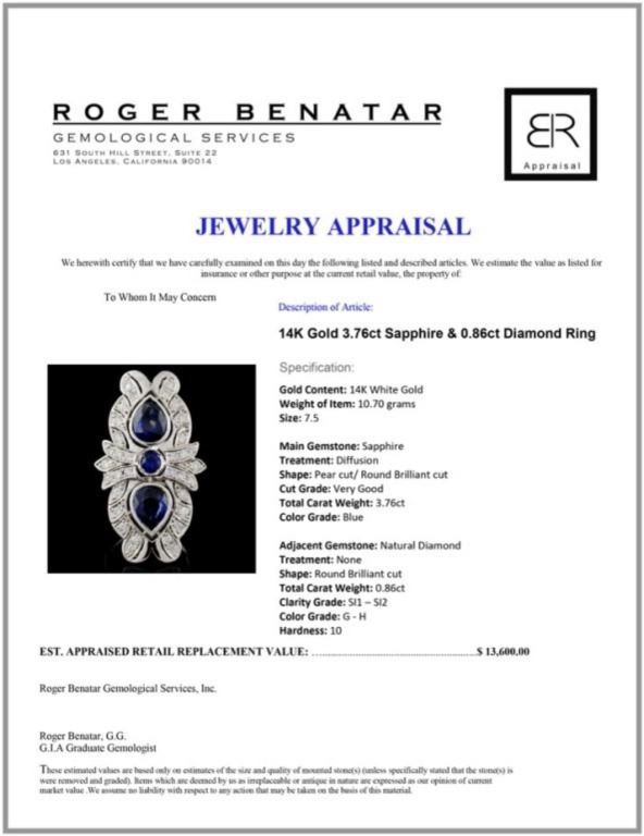 Regarding Appraised Jewelry and Loose Stones - Auctionfarm sends them out to a third party for Retail Replacement Value Appraisals, which are the most common. These types of evaluations are written for insurance needs. This would be the cost to replace the jewelry with an item of equal quality and kind, considered to be the current market price or the replacement value. This type of appraisal is done to protect you in the event of damage or loss of a valuable item. Our appraisals are conducted by independent 3rd Party appraisal firms that utilizes Certified GIA Gemologist. Appraisals should be used for verification of gemstone and/or metal weight, size, and grade only, not actual value. Appraisal value should be considered for insurance purposes only, not actual value, as price varies greatly from retail locations thru out the world. Items should not be purchased with the expectation to resell for appraisal price, or for profit.