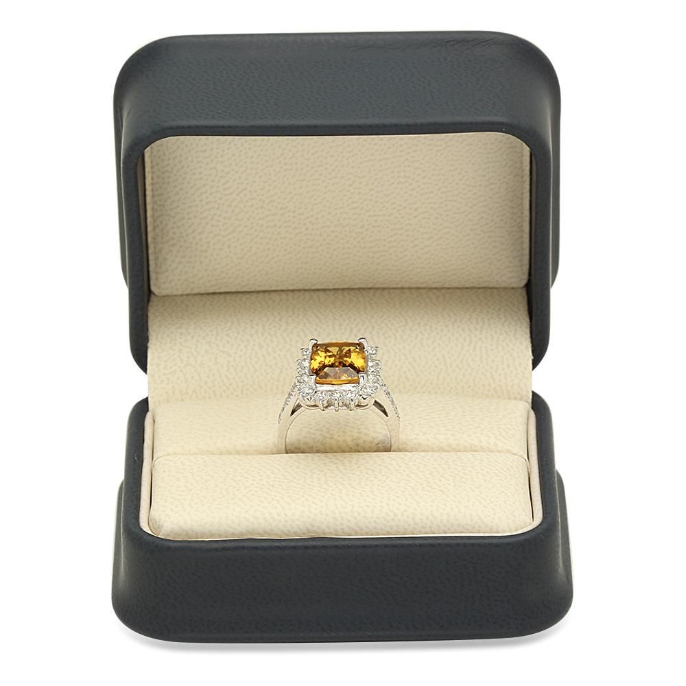 Retail: $6,248.00 ****** 14K Gold 3.91ct Yellow Beryl 1.15cts Diamond Ring****** Metal: 14K White Gold / Total Item Weight: 6.5 grams / Country Made: United States / / Main Stone: Beryl / Color: Orangy Yellow / Carat Total Weight: 3.91 / Treatment: None / Cut: Very Good / Secondary Stone: Diamond / Carat Total Weight: 1.15 / Treatment: None / Color Grade: G-H / Clarity: SI1 - SI2 / Cut: Round Brilliant /