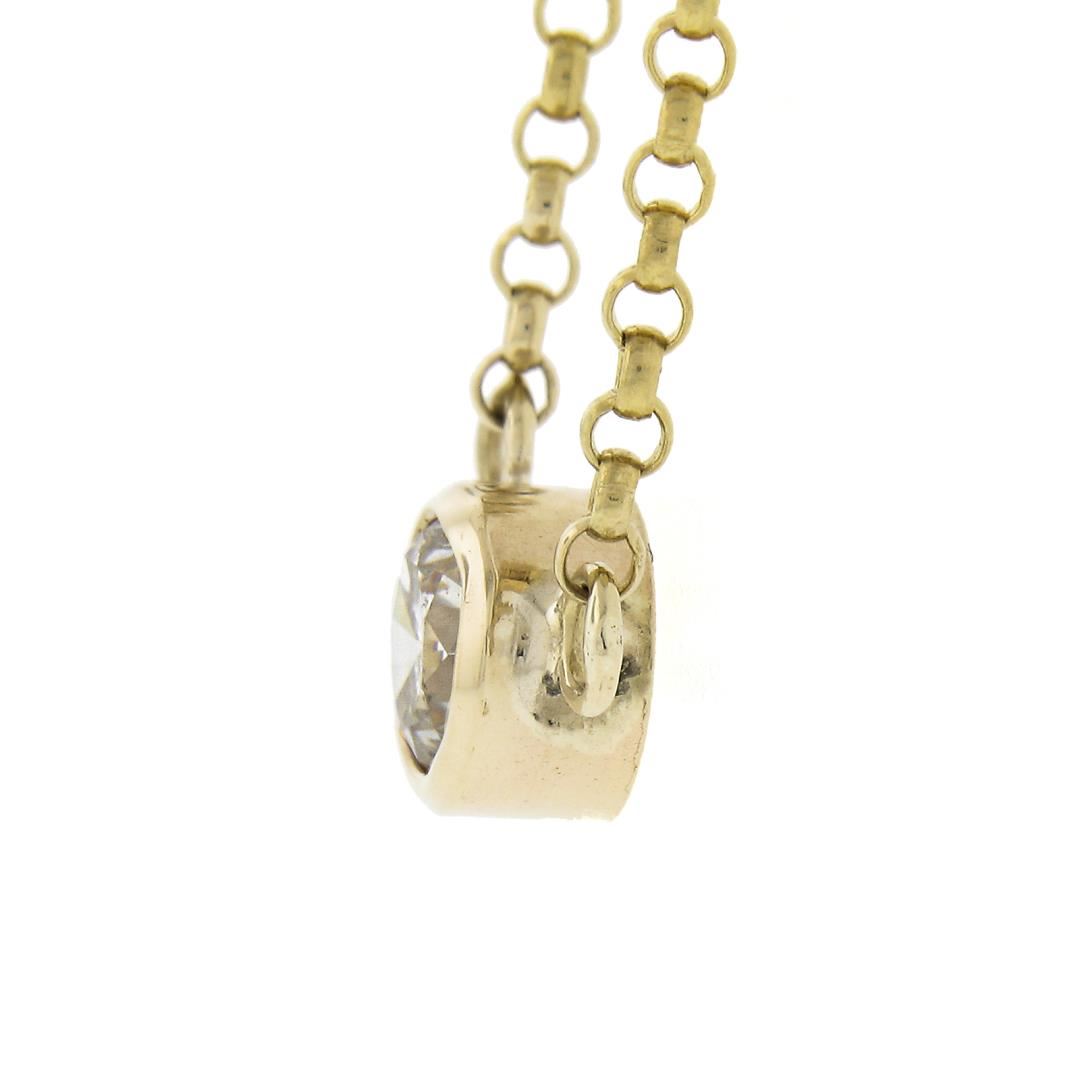 A solid 14k yellow gold pendant necklace, with 1 round cut natural diamond (G-  I1 ; 0.33ct). 16 inch rolo link chain, 3.0 grams total weight, pendant measures 5.7mm.