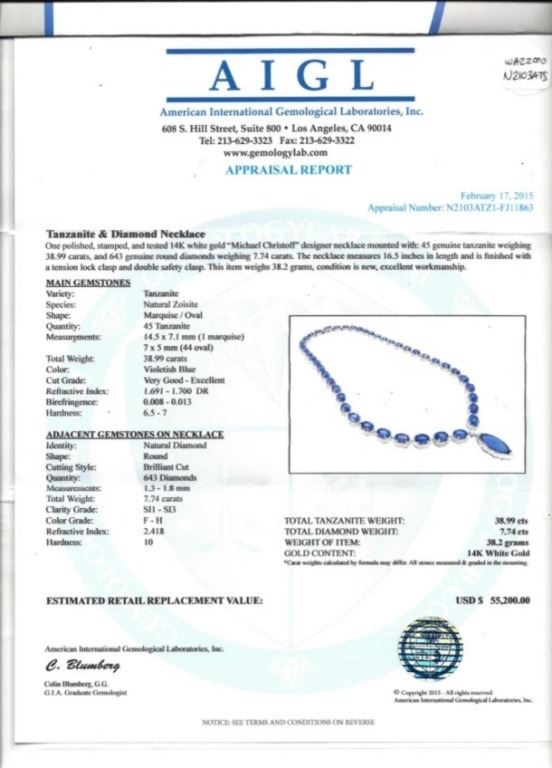 Regarding Appraised Jewelry and Loose Stones - Auctionfarm sends them out to a third party for Retail Replacement Value Appraisals, which are the most common. These types of evaluations are written for insurance needs. This would be the cost to replace the jewelry with an item of equal quality and kind, considered to be the current market price or the replacement value. This type of appraisal is done to protect you in the event of damage or loss of a valuable item. Our appraisals are conducted by independent 3rd Party appraisal firms that utilizes Certified GIA Gemologist. Appraisals should be used for verification of gemstone and/or metal weight, size, and grade only, not actual value. Appraisal value should be considered for insurance purposes only, not actual value, as price varies greatly from retail locations thru out the world. Items should not be purchased with the expectation to resell for appraisal price, or for profit.