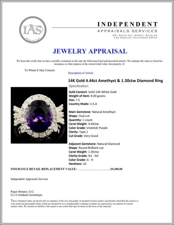 Regarding Appraised Jewelry and Loose Stones - Auctionfarm sends them out to a third party for Retail Replacement Value Appraisals, which are the most common. These types of evaluations are written for insurance needs. This would be the cost to replace the jewelry with an item of equal quality and kind, considered to be the current market price or the replacement value. This type of appraisal is done to protect you in the event of damage or loss of a valuable item. Our appraisals are conducted by independent 3rd Party appraisal firms that utilizes Certified GIA Gemologist. Appraisals should be used for verification of gemstone and/or metal weight, size, and grade only, not actual value. Appraisal value should be considered for insurance purposes only, not actual value, as price varies greatly from retail locations thru out the world. Items should not be purchased with the expectation to resell for appraisal price, or for profit.