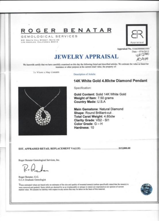 Regarding Appraised Jewelry and Loose Stones - Auctionfarm sends them out to a third party for Retail Replacement Value Appraisals, which are the most common. These types of evaluations are written for insurance needs. This would be the cost to replace the jewelry with an item of equal quality and kind, considered to be the current market price or the replacement value. This type of appraisal is done to protect you in the event of damage or loss of a valuable item. Our appraisals are conducted by independent 3rd Party appraisal firms that utilizes Certified GIA Gemologist. Appraisals should be used for verification of gemstone and/or metal weight, size, and grade only, not actual value. Appraisal value should be considered for insurance purposes only, not actual value, as price varies greatly from retail locations thru out the world. Items should not be purchased with the expectation to resell for appraisal price, or for profit.