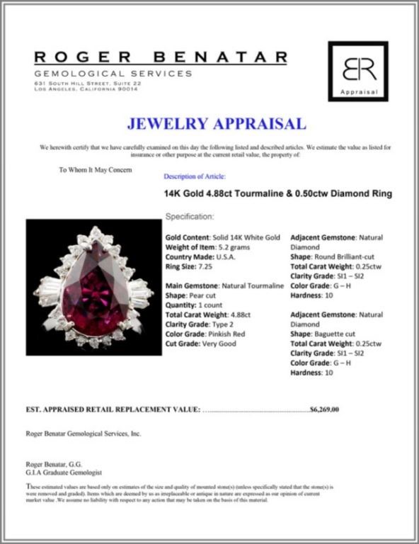 Regarding Appraised Jewelry and Loose Stones - Auctionfarm sends them out to a third party for Retail Replacement Value Appraisals, which are the most common. These types of evaluations are written for insurance needs. This would be the cost to replace the jewelry with an item of equal quality and kind, considered to be the current market price or the replacement value. This type of appraisal is done to protect you in the event of damage or loss of a valuable item. Our appraisals are conducted by independent 3rd Party appraisal firms that utilizes Certified GIA Gemologist. Appraisals should be used for verification of gemstone and/or metal weight, size, and grade only, not actual value. Appraisal value should be considered for insurance purposes only, not actual value, as price varies greatly from retail locations thru out the world. Items should not be purchased with the expectation to resell for appraisal price, or for profit.