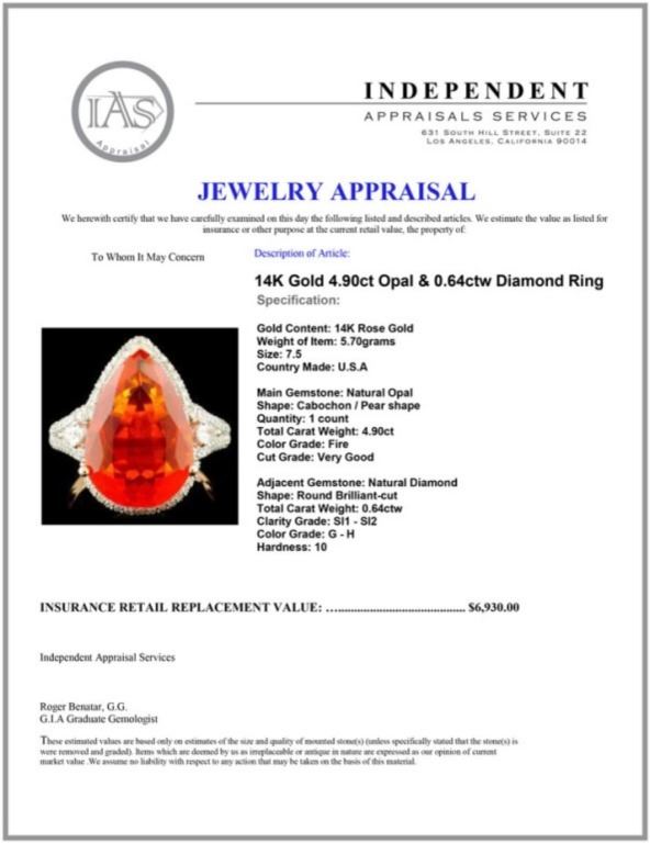 Regarding Appraised Jewelry and Loose Stones - Auctionfarm sends them out to a third party for Retail Replacement Value Appraisals, which are the most common. These types of evaluations are written for insurance needs. This would be the cost to replace the jewelry with an item of equal quality and kind, considered to be the current market price or the replacement value. This type of appraisal is done to protect you in the event of damage or loss of a valuable item. Our appraisals are conducted by independent 3rd Party appraisal firms that utilizes Certified GIA Gemologist. Appraisals should be used for verification of gemstone and/or metal weight, size, and grade only, not actual value. Appraisal value should be considered for insurance purposes only, not actual value, as price varies greatly from retail locations thru out the world. Items should not be purchased with the expectation to resell for appraisal price, or for profit.