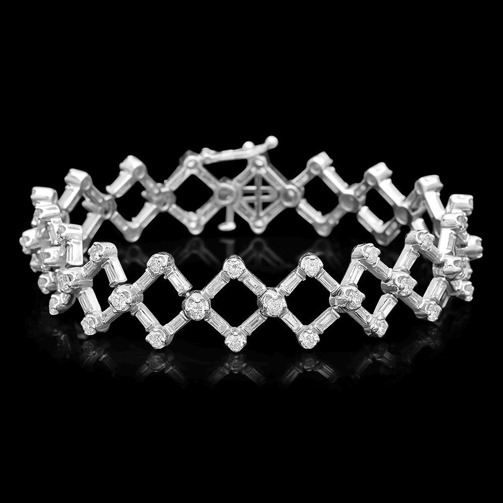 Retail: $15,445.00 ****** 14K Gold 4.96ct Diamond Bracelet ****** Metal: 14K Solid Gold / Total Item Weight: 17.5 grams / Country Made: United States / / Main Stone: Diamond / Carat Total Weight: 4.96 / Treatment: None / Cut: Very Good - Excellent / Color Grade: F - G / Clarity: VS2 - SI2 / Cut: Baguette / Round Brilliant /