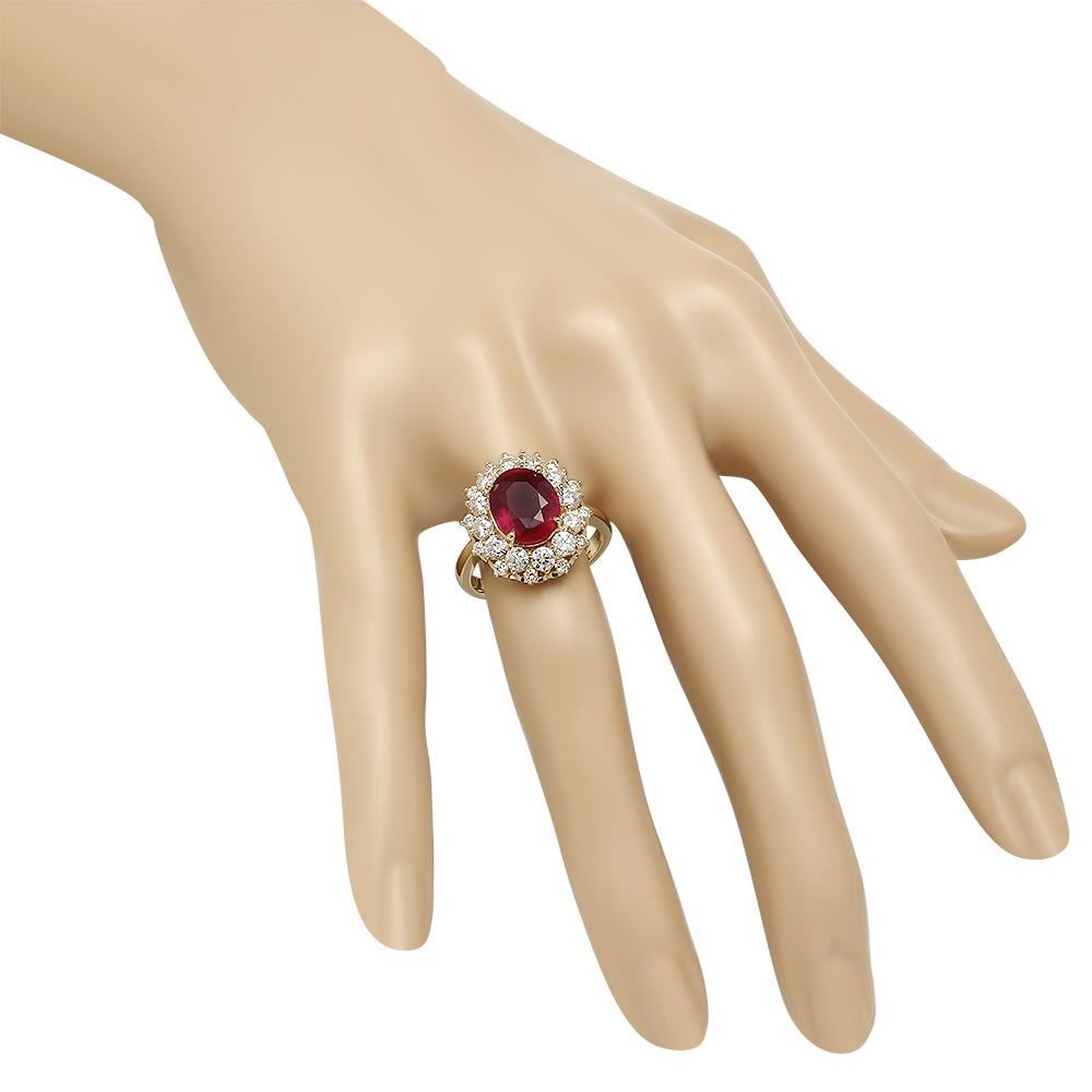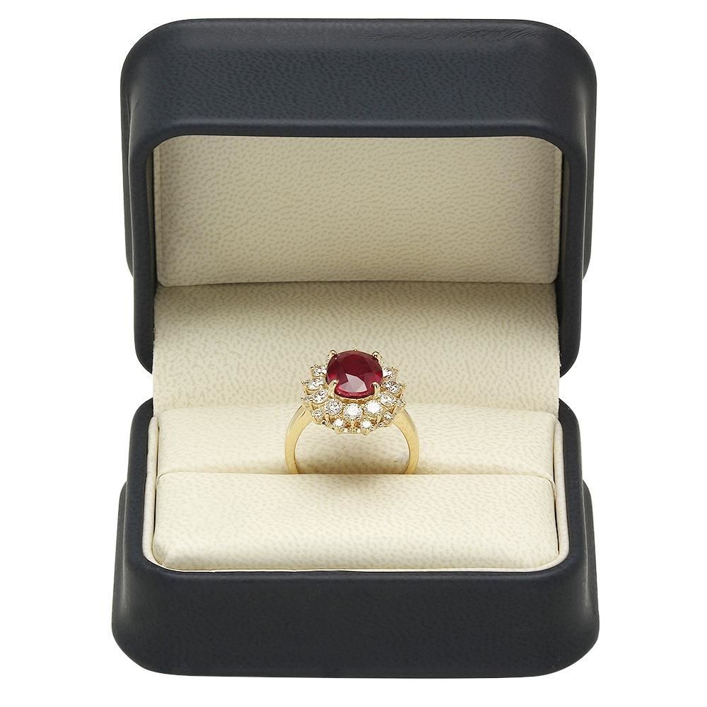Retail: $7,660.00 ****** 14K Gold 4.97ct Ruby 1.54ct Diamond Ring ****** Metal: 14K Solid Gold / Total Item Weight: 7.0 grams / Country Made: United States / / Main Stone: Ruby / Color: Red / Carat Total Weight: 4.97 / Treatment: None / Cut: Very Good / / Secondary Stone: Diamond / Carat Total Weight: 1.54 / Treatment: None / Color Grade: F - G / Clarity: SI1 - SI2 / Cut: Round Brilliant /