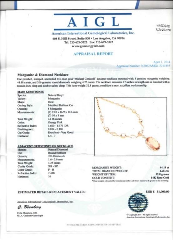 Regarding Appraised Jewelry and Loose Stones - Auctionfarm sends them out to a third party for Retail Replacement Value Appraisals, which are the most common. These types of evaluations are written for insurance needs. This would be the cost to replace the jewelry with an item of equal quality and kind, considered to be the current market price or the replacement value. This type of appraisal is done to protect you in the event of damage or loss of a valuable item. Our appraisals are conducted by independent 3rd Party appraisal firms that utilizes Certified GIA Gemologist. Appraisals should be used for verification of gemstone and/or metal weight, size, and grade only, not actual value. Appraisal value should be considered for insurance purposes only, not actual value, as price varies greatly from retail locations thru out the world. Items should not be purchased with the expectation to resell for appraisal price, or for profit.