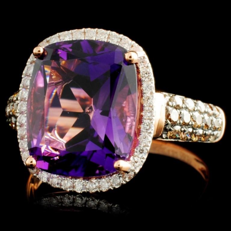 14K Gold 5.03ct Amethyst & 0.57ctw Diamond Ring