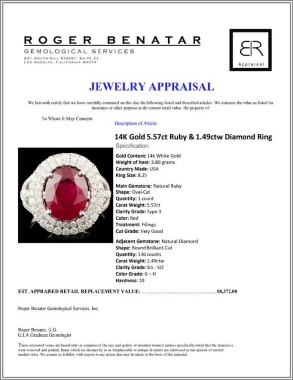 Regarding Appraised Jewelry and Loose Stones - Auctionfarm sends them out to a third party for Retail Replacement Value Appraisals, which are the most common. These types of evaluations are written for insurance needs. This would be the cost to replace the jewelry with an item of equal quality and kind, considered to be the current market price or the replacement value. This type of appraisal is done to protect you in the event of damage or loss of a valuable item. Our appraisals are conducted by independent 3rd Party appraisal firms that utilizes Certified GIA Gemologist. Appraisals should be used for verification of gemstone and/or metal weight, size, and grade only, not actual value. Appraisal value should be considered for insurance purposes only, not actual value, as price varies greatly from retail locations thru out the world. Items should not be purchased with the expectation to resell for appraisal price, or for profit.