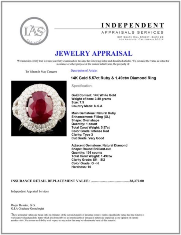 Regarding Appraised Jewelry and Loose Stones - Auctionfarm sends them out to a third party for Retail Replacement Value Appraisals, which are the most common. These types of evaluations are written for insurance needs. This would be the cost to replace the jewelry with an item of equal quality and kind, considered to be the current market price or the replacement value. This type of appraisal is done to protect you in the event of damage or loss of a valuable item. Our appraisals are conducted by independent 3rd Party appraisal firms that utilizes Certified GIA Gemologist. Appraisals should be used for verification of gemstone and/or metal weight, size, and grade only, not actual value. Appraisal value should be considered for insurance purposes only, not actual value, as price varies greatly from retail locations thru out the world. Items should not be purchased with the expectation to resell for appraisal price, or for profit.