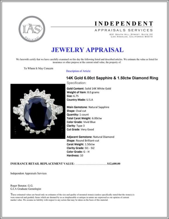 Regarding Appraised Jewelry and Loose Stones - Auctionfarm sends them out to a third party for Retail Replacement Value Appraisals, which are the most common. These types of evaluations are written for insurance needs. This would be the cost to replace the jewelry with an item of equal quality and kind, considered to be the current market price or the replacement value. This type of appraisal is done to protect you in the event of damage or loss of a valuable item. Our appraisals are conducted by independent 3rd Party appraisal firms that utilizes Certified GIA Gemologist. Appraisals should be used for verification of gemstone and/or metal weight, size, and grade only, not actual value. Appraisal value should be considered for insurance purposes only, not actual value, as price varies greatly from retail locations thru out the world. Items should not be purchased with the expectation to resell for appraisal price, or for profit.