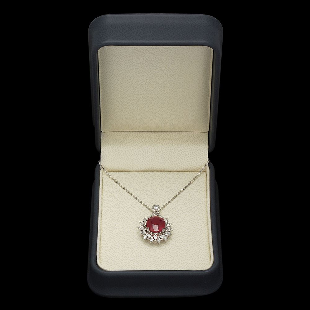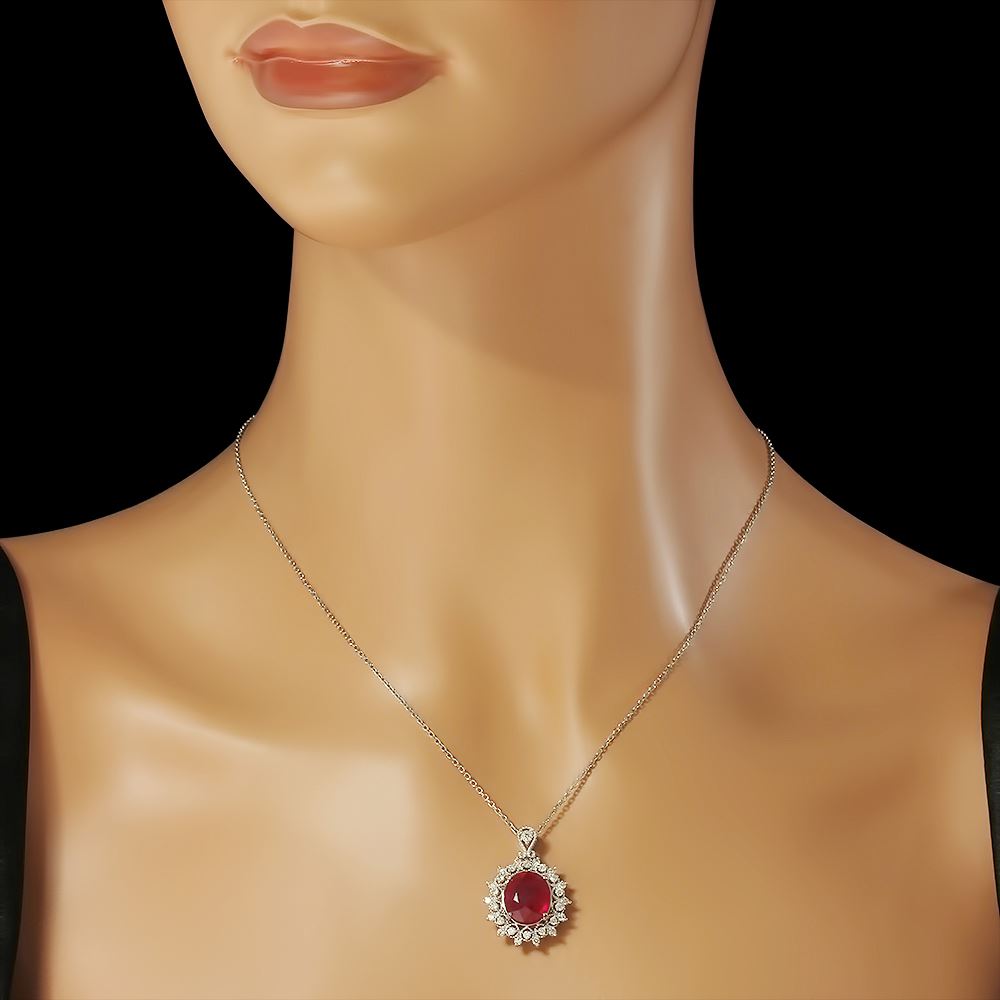 Retail: $4,656.00 ****** 14K Gold 7.08ct Ruby 0.65ct Diamond Pendant ****** Metal: 14K Solid Gold / Total Item Weight: 4.7 grams / Country Made: United States / / Main Stone: Ruby / Color: Red / Carat Total Weight: 7.08 / Treatment: None / Cut: Very Good / / Secondary Stone: Diamond / Carat Total Weight: 0.65 / Treatment: None / Color Grade: G - H / Clarity: SI1 - SI2 / Cut: Round Brilliant /