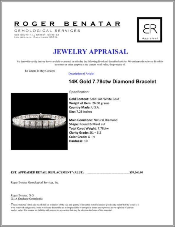 Regarding Appraised Jewelry and Loose Stones - Auctionfarm sends them out to a third party for Retail Replacement Value Appraisals, which are the most common. These types of evaluations are written for insurance needs. This would be the cost to replace the jewelry with an item of equal quality and kind, considered to be the current market price or the replacement value. This type of appraisal is done to protect you in the event of damage or loss of a valuable item. Our appraisals are conducted by independent 3rd Party appraisal firms that utilizes Certified GIA Gemologist. Appraisals should be used for verification of gemstone and/or metal weight, size, and grade only, not actual value. Appraisal value should be considered for insurance purposes only, not actual value, as price varies greatly from retail locations thru out the world. Items should not be purchased with the expectation to resell for appraisal price, or for profit.