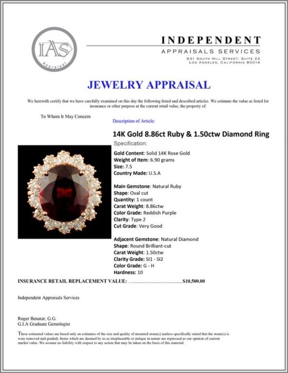 Regarding Appraised Jewelry and Loose Stones - Auctionfarm sends them out to a third party for Retail Replacement Value Appraisals, which are the most common. These types of evaluations are written for insurance needs. This would be the cost to replace the jewelry with an item of equal quality and kind, considered to be the current market price or the replacement value. This type of appraisal is done to protect you in the event of damage or loss of a valuable item. Our appraisals are conducted by independent 3rd Party appraisal firms that utilizes Certified GIA Gemologist. Appraisals should be used for verification of gemstone and/or metal weight, size, and grade only, not actual value. Appraisal value should be considered for insurance purposes only, not actual value, as price varies greatly from retail locations thru out the world. Items should not be purchased with the expectation to resell for appraisal price, or for profit.