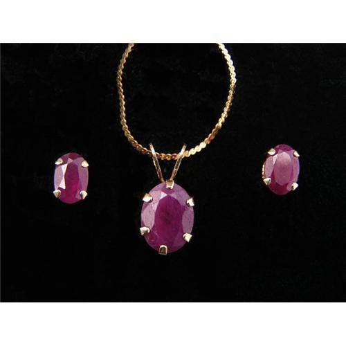 Suspended from a fine 12" 14K gold chain is a beautiful oval .325mm amethyst that is prong set in 14K gold. A matching pair of oval .25mm amethyst earrings, also prong set in 14K gold. All items in this set are marked and they are also all in perfect condition.