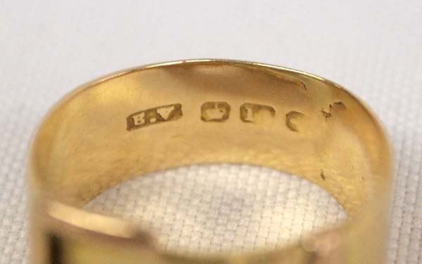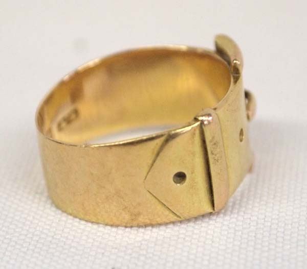 14K Gold Buckle Ring, Size 9.5, measures 1.25''W, 79.1g in total wt.