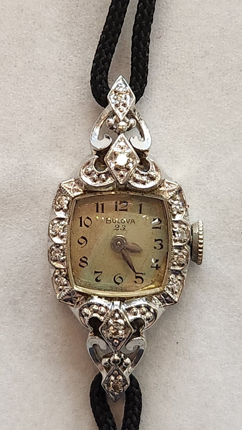 14K Gold Diamond Bulova Cocktail Watch 23 Jewels Swiss, In Working Condition