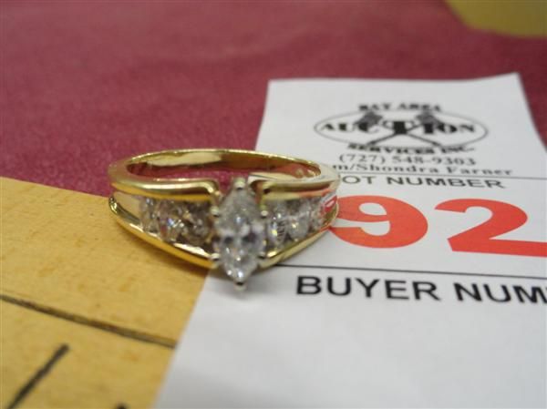14K Gold Diamond Ring - .35CT Center Marquise & 6 Marquise Accent Diamonds .40 CTTW - Est Retail $2025