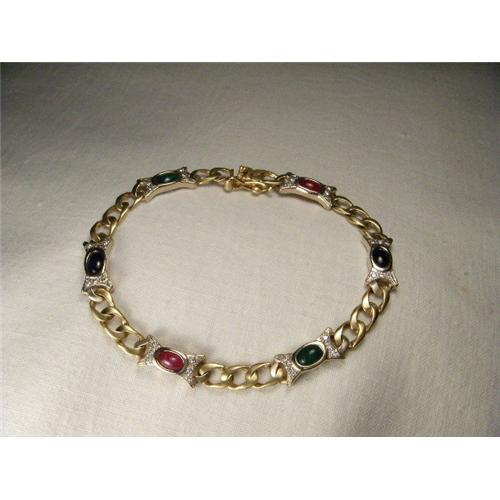 <tr><td>Title:14K Gold Diamond Ruby Sapphire Emerald Bracelet</td></tr>