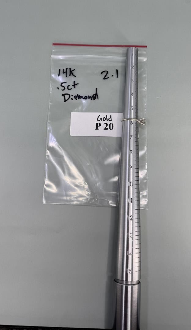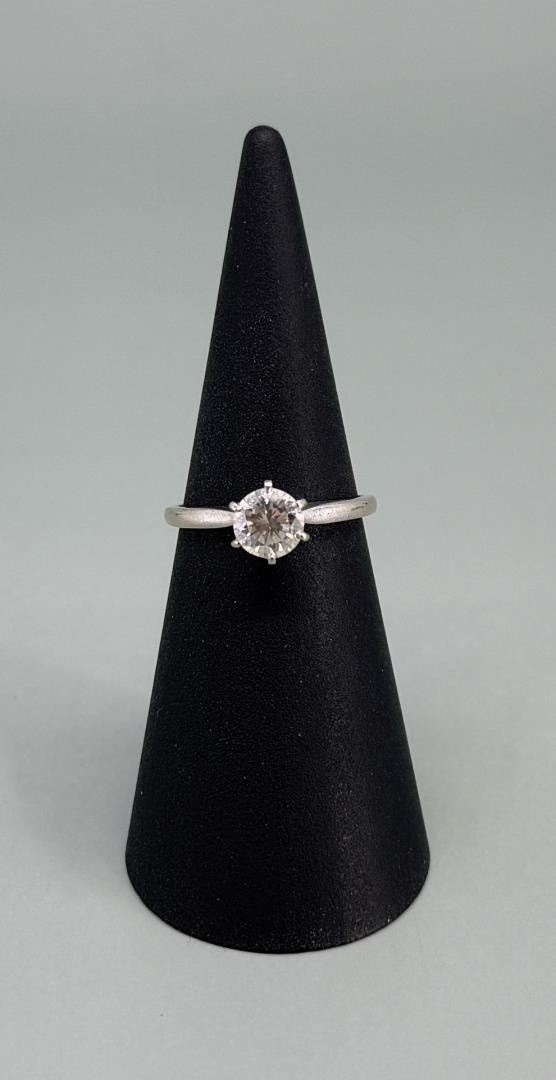 Size 5 3/4. 2.1 grams. Diamond is .5 carats. Lot requires payment via non credit card.