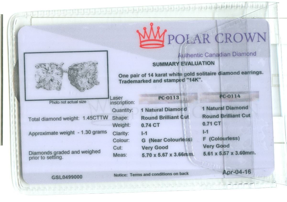 Diamond Solitaire Stud Earrings 14K Gold 1.45 ctw.