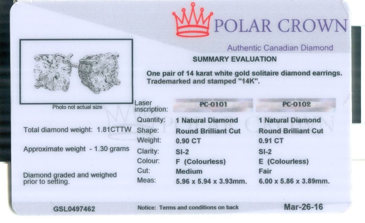 Diamond Solitaire Stud Earrings 14K Gold 1.81 ctw