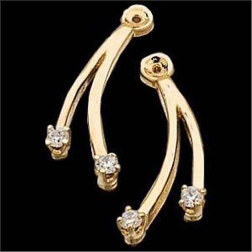 14k Yellow Gold EARRING JACKETS each set with 2 DIAMONDS. The Diamond Total Weight = .12 Carats. THIS PAIR OF DIAMOND EARRING JACKETS WILL COMPLETELY CHANGE THE LOOK OF YOUR DIAMOND STUDS!