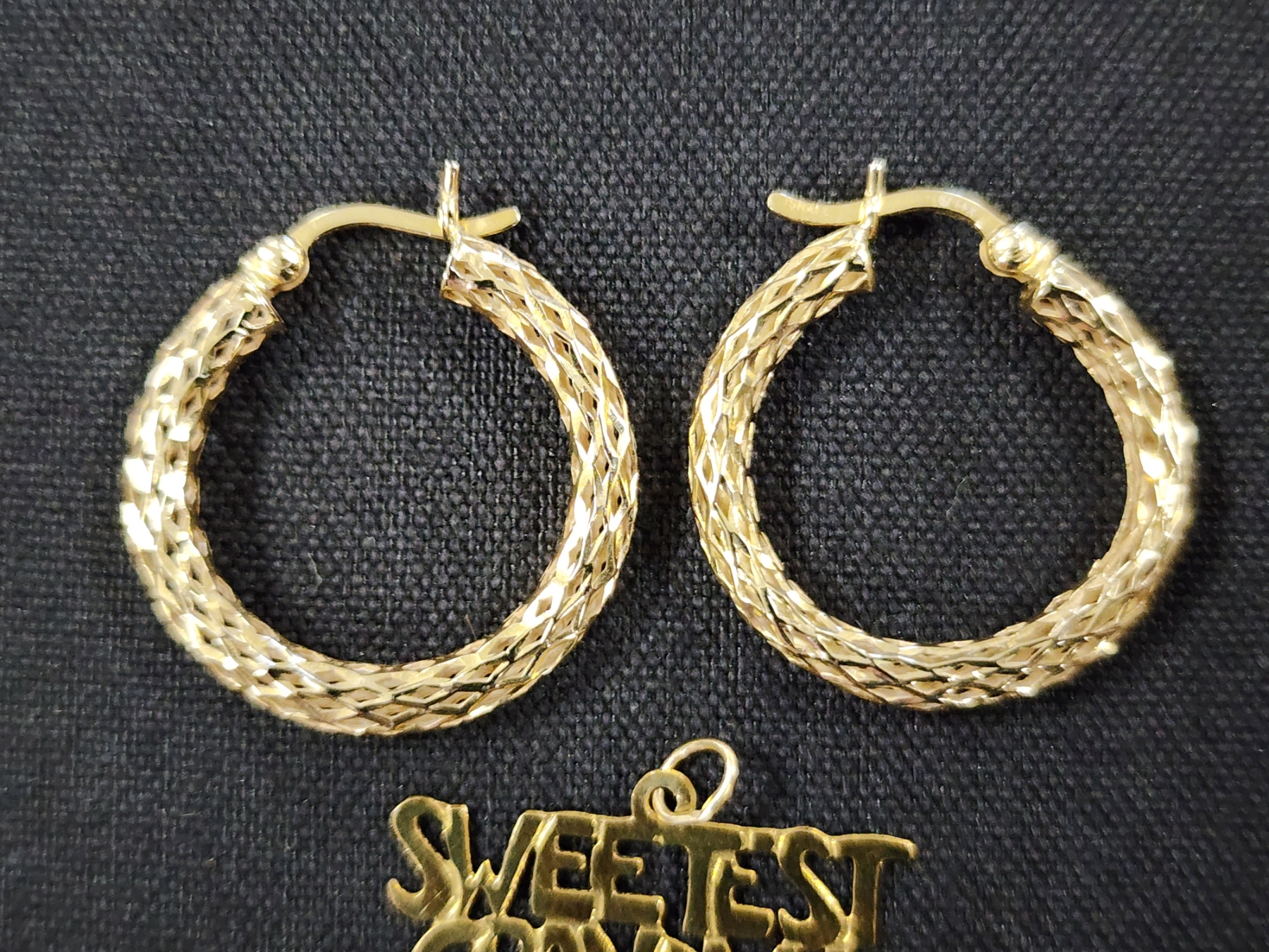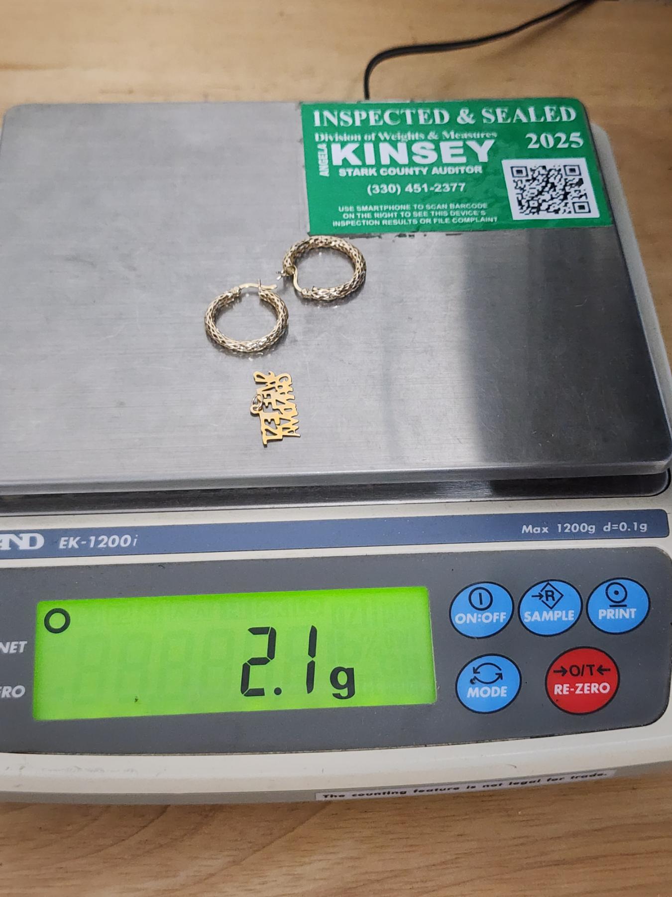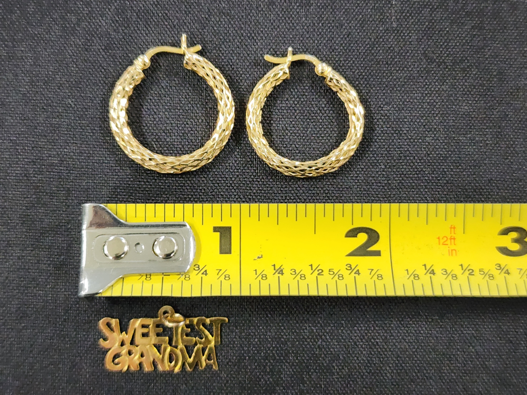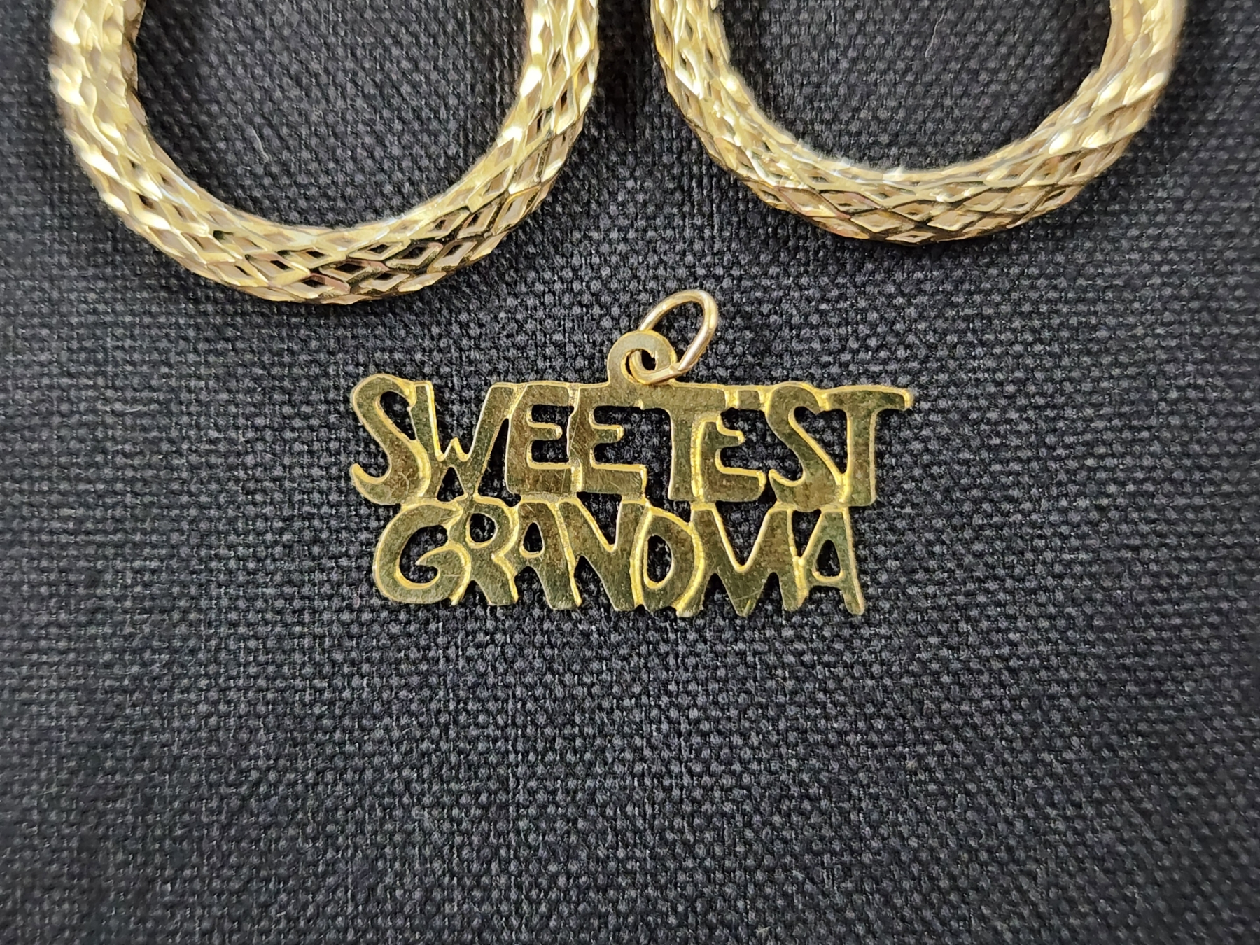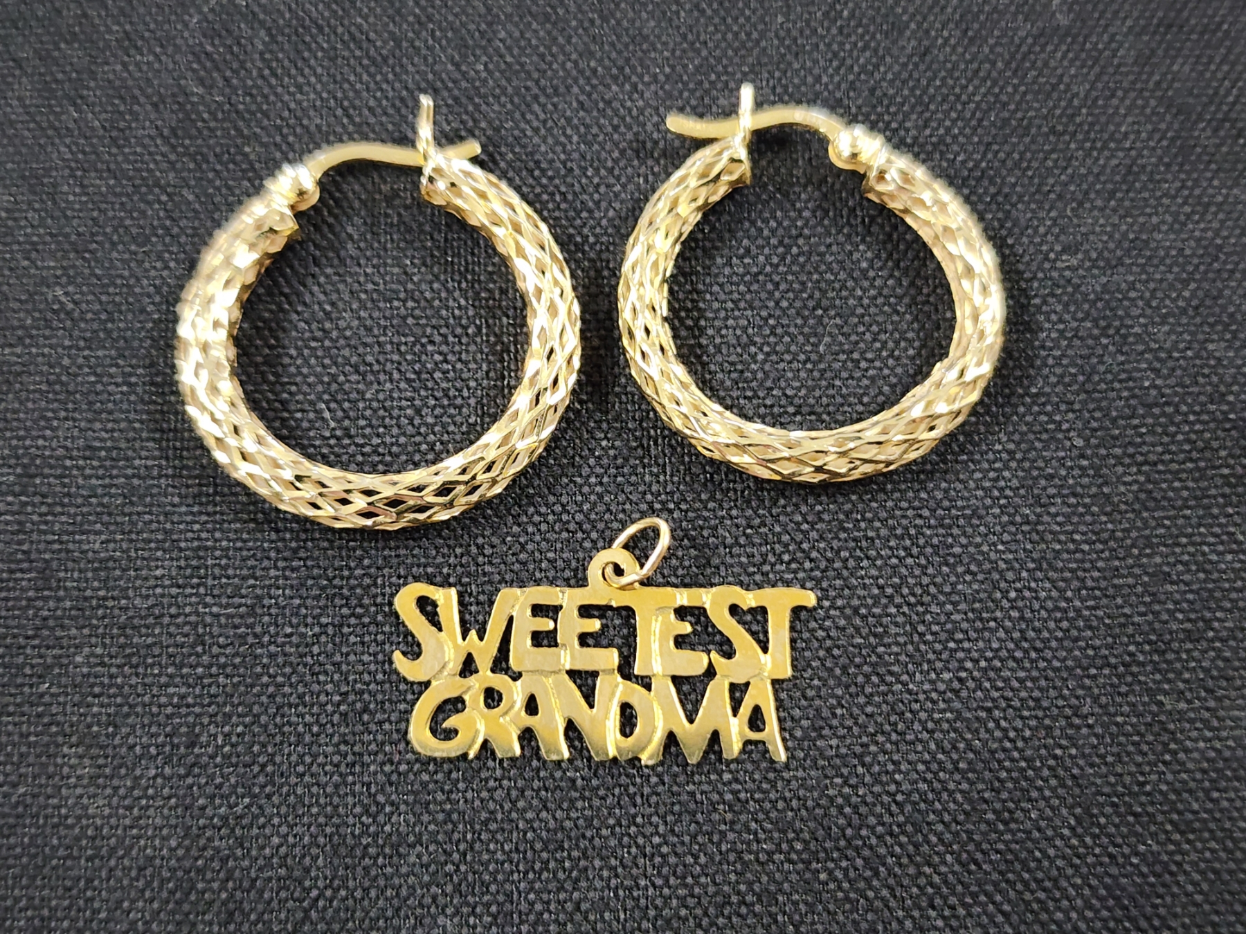 14K Gold Earring Set & "Sweetest Grandma" Pendant - 2.1 Grams Total of 14K Gold Jewelry
