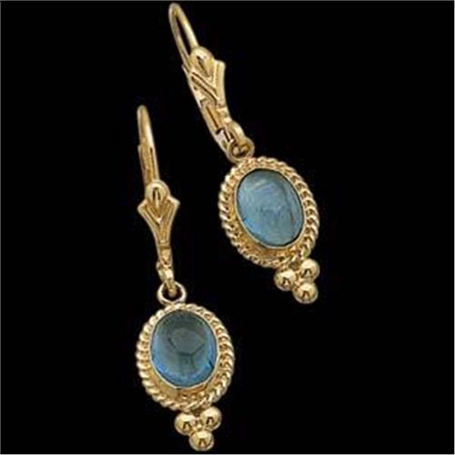 <tr><td>Title:14K Gold Earrings London BLUE TOPAZ</td></tr>