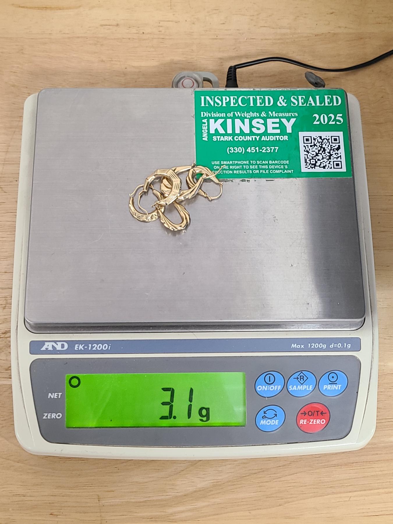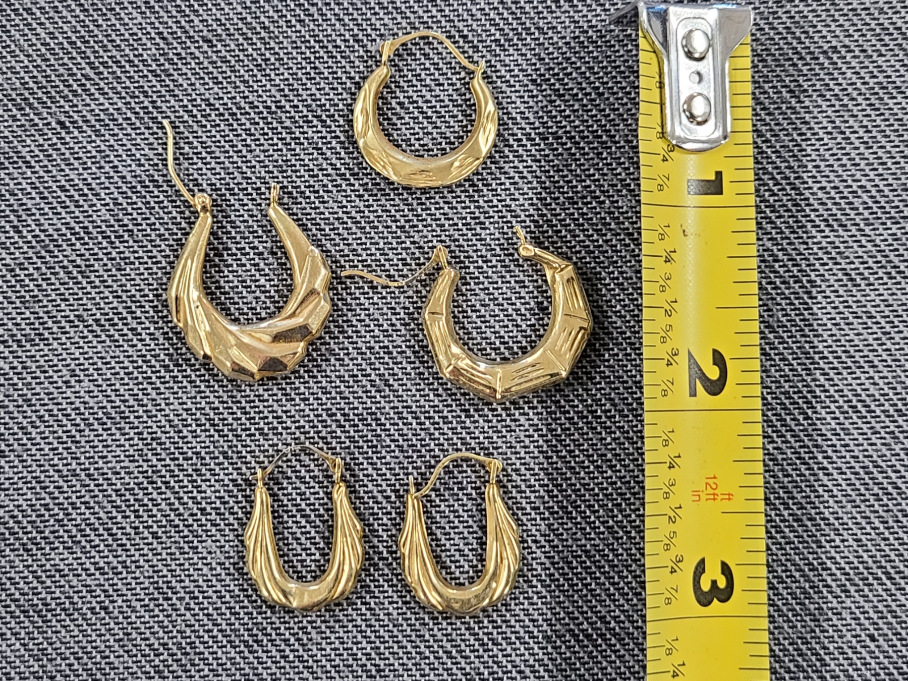 14K Gold Earrings Lot of 5 Mixed Earrings Weighing 3.1 Grams Total