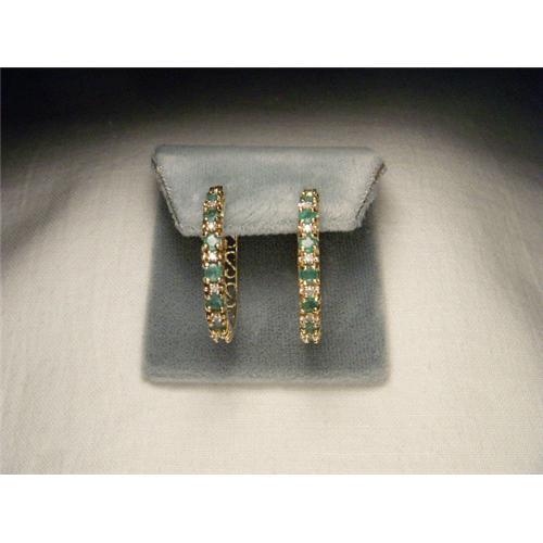<tr><td>Title:14K Gold Emerald Diamond Filigree Hoop Earrings</td></tr>