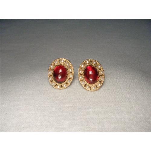 <tr><td>Title:14K Gold Garnet Seed Pearl Filigree Earrings</td></tr>