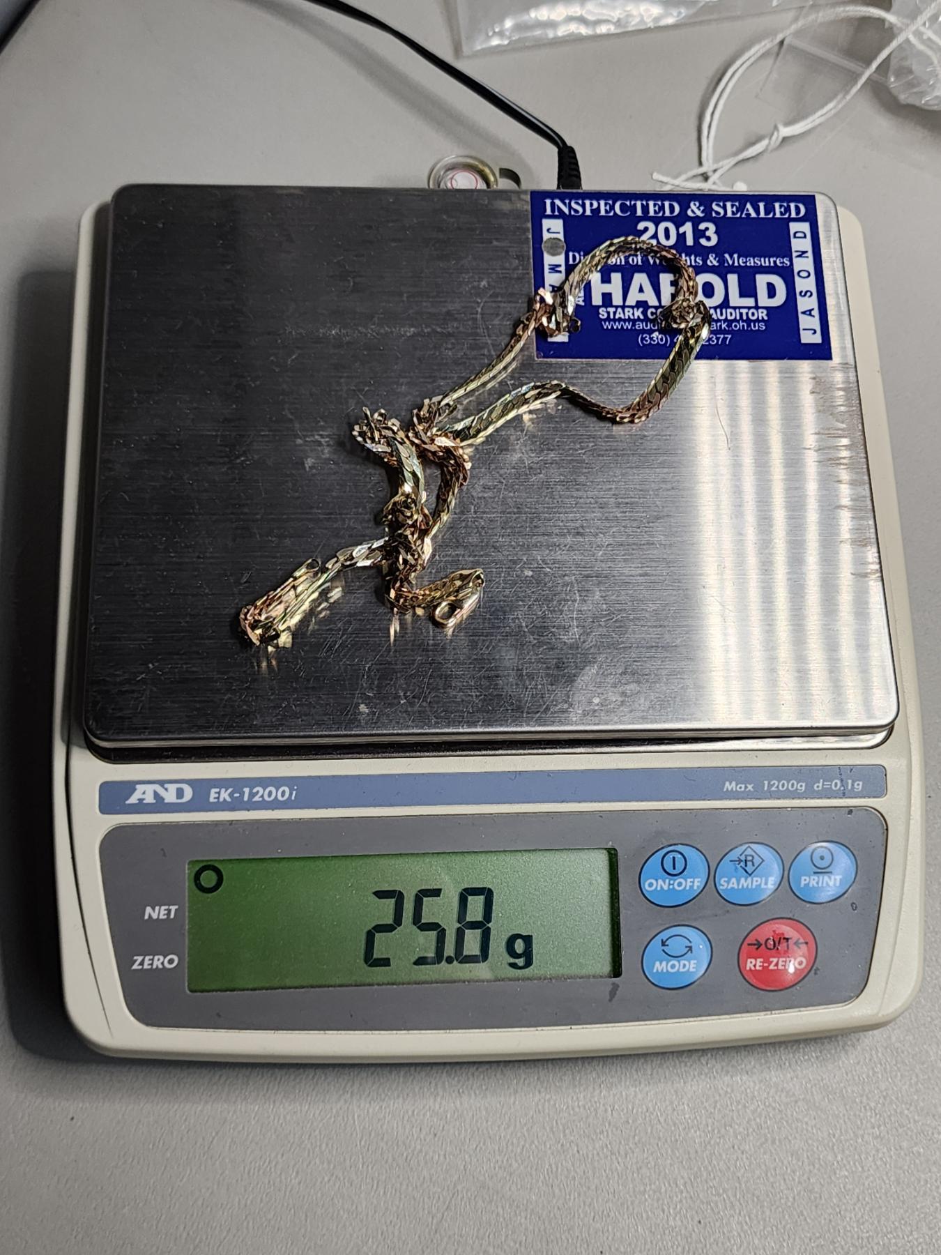 14K Gold Herringbone Chain Approx. 16in - Some Tangles/Damage - TW: 25.8g