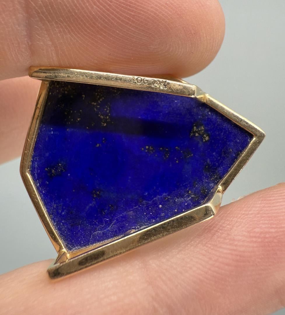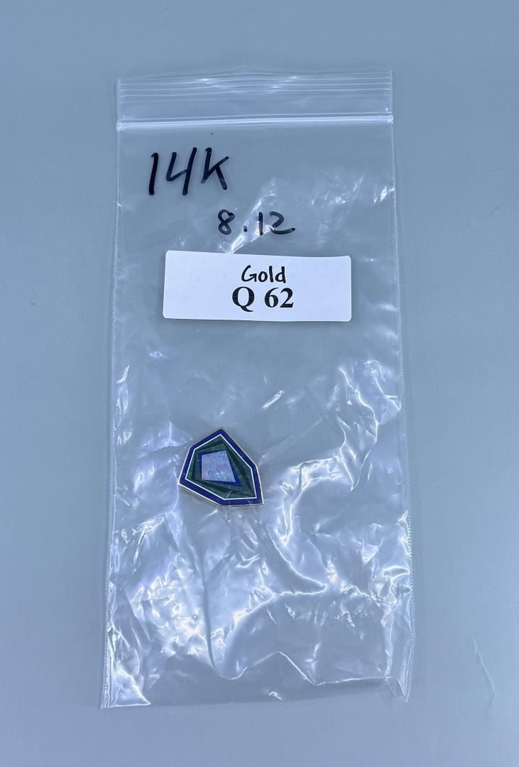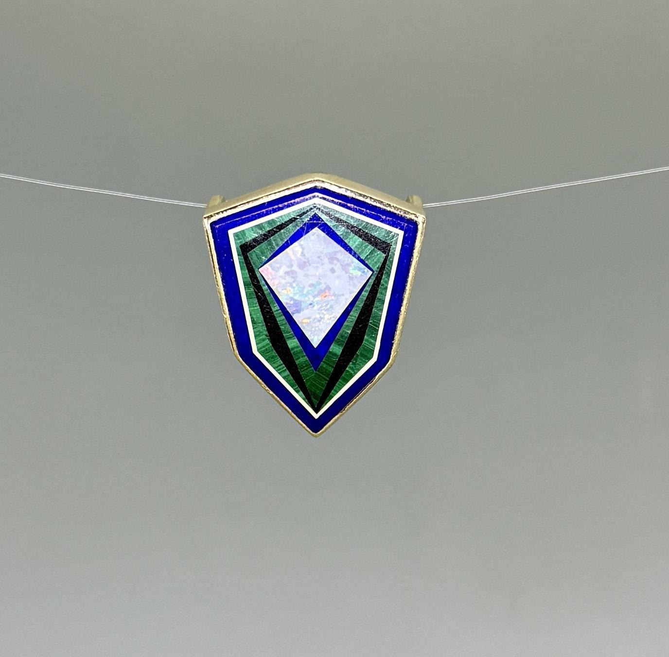 Lapis inlaid with opal, malachite, and onyx. 1 3/8" long. 8.12 grams total weight.