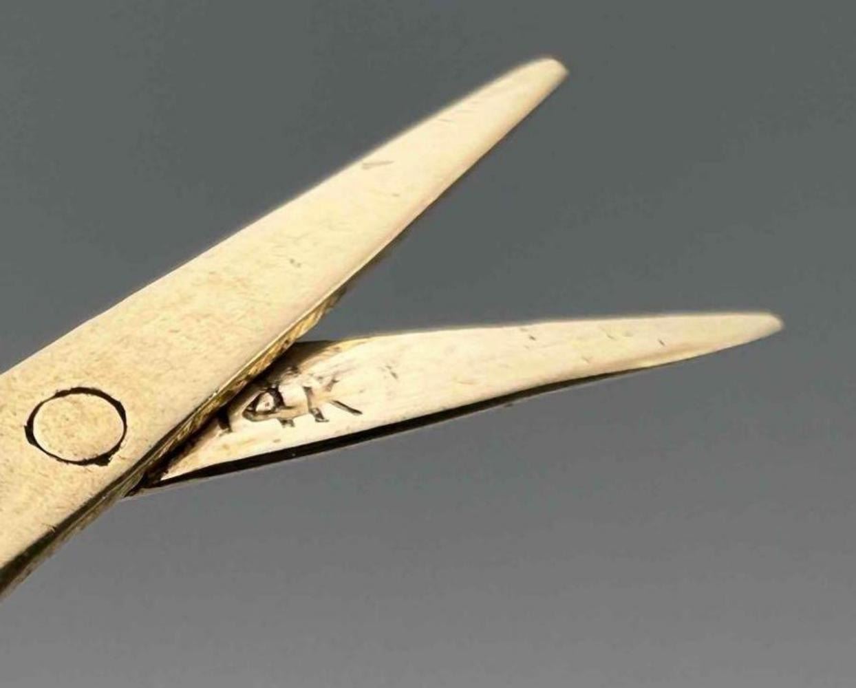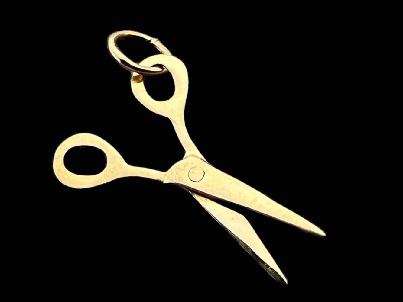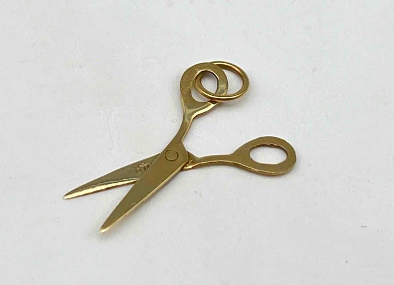 14K Gold Mechanical Scissors Charm. 0.1g. Marked 14K. Scissors Open And Close. Approximately 0.75 L x 0.5 W Inches. ALL CREDIT CARDS WILL BE MANUALLY VERIFIED PRIOR TO SHIPMENT.