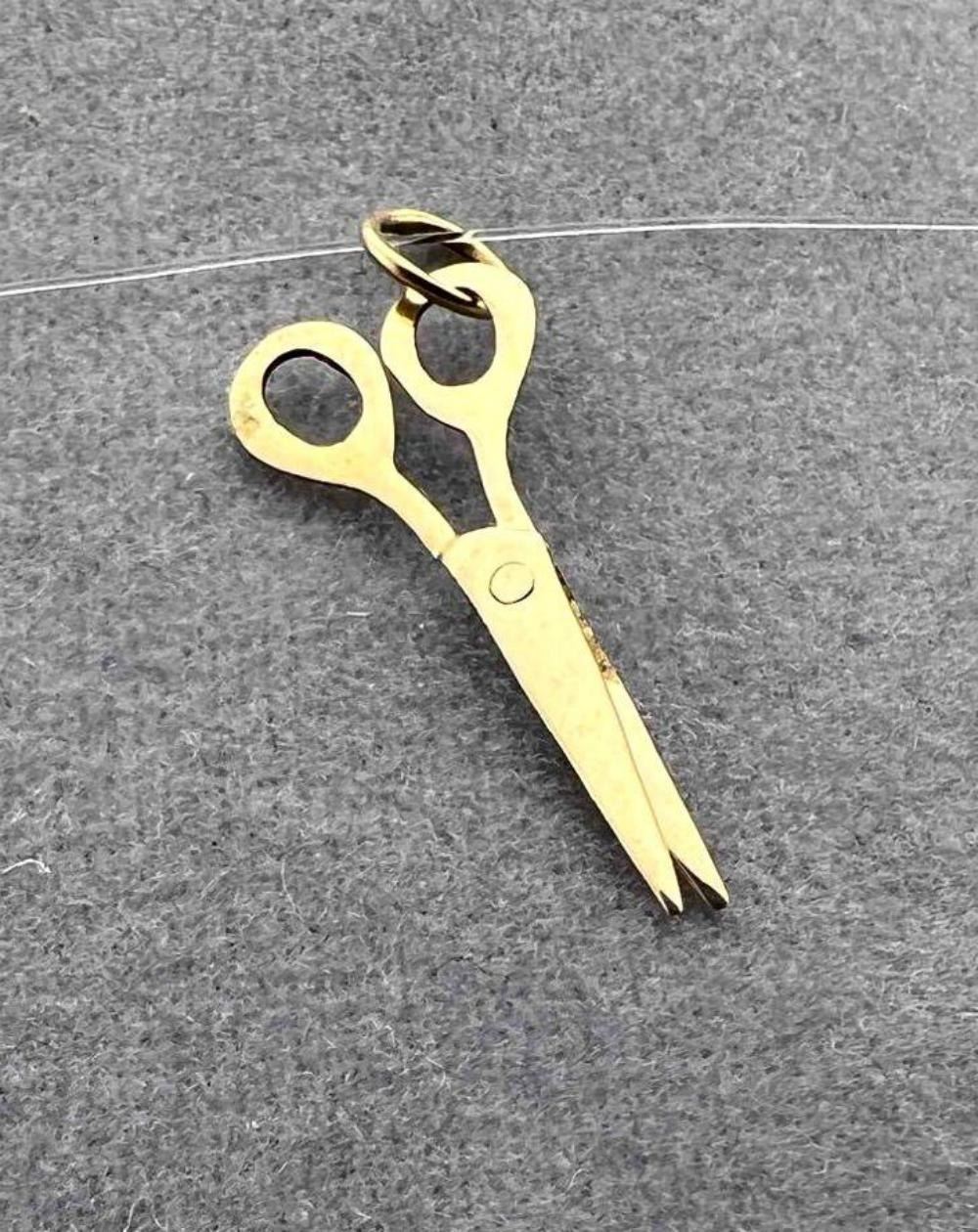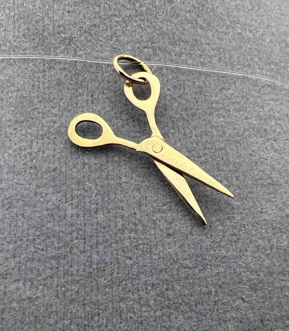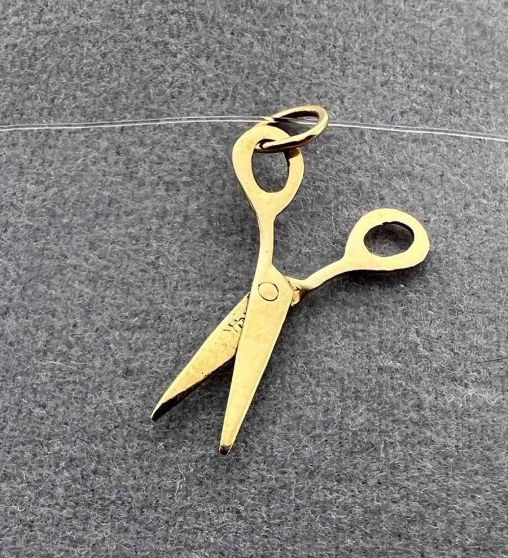 14K Gold Mechanical Scissors Charm. 0.1g. Marked 14K. Scissors Open And Close. Approximately 0.75 L x 0.5 W Inches. ALL CREDIT CARDS WILL BE MANUALLY VERIFIED PRIOR TO SHIPMENT.