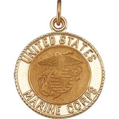 14k Yellow Gold Pendant UNITED STATES MARINE CORPS MEDAL measuring 3/4 inch across. There is a 14k Gold bail to slip through a chain.